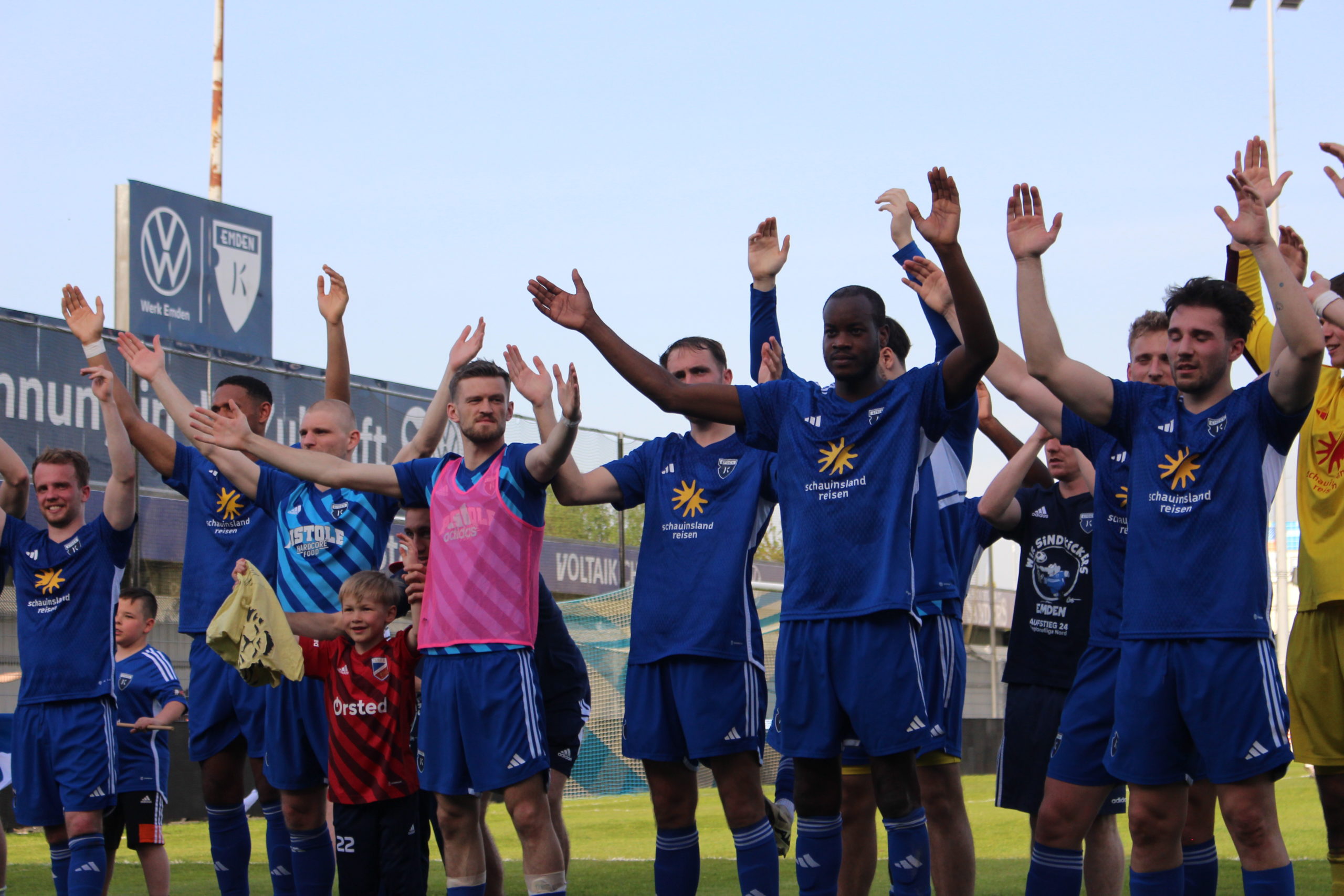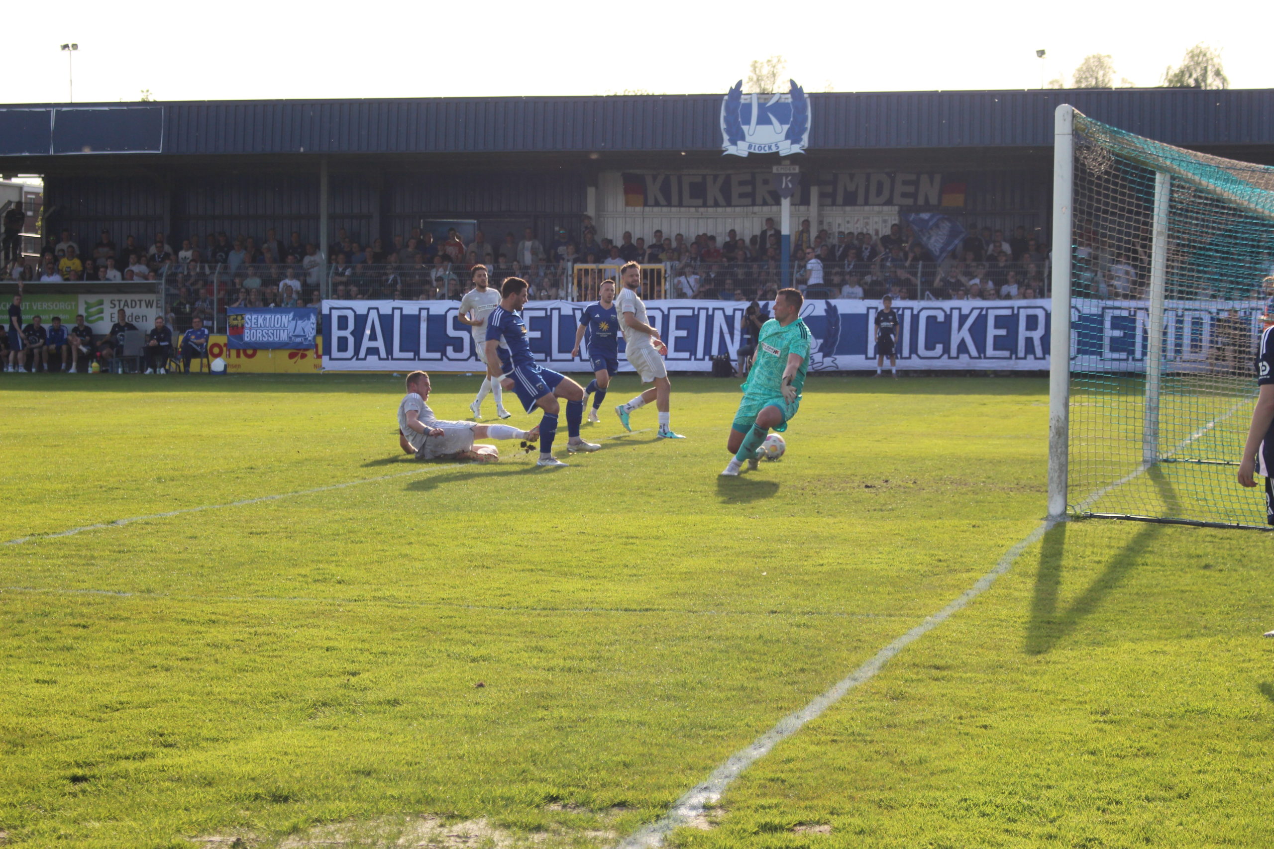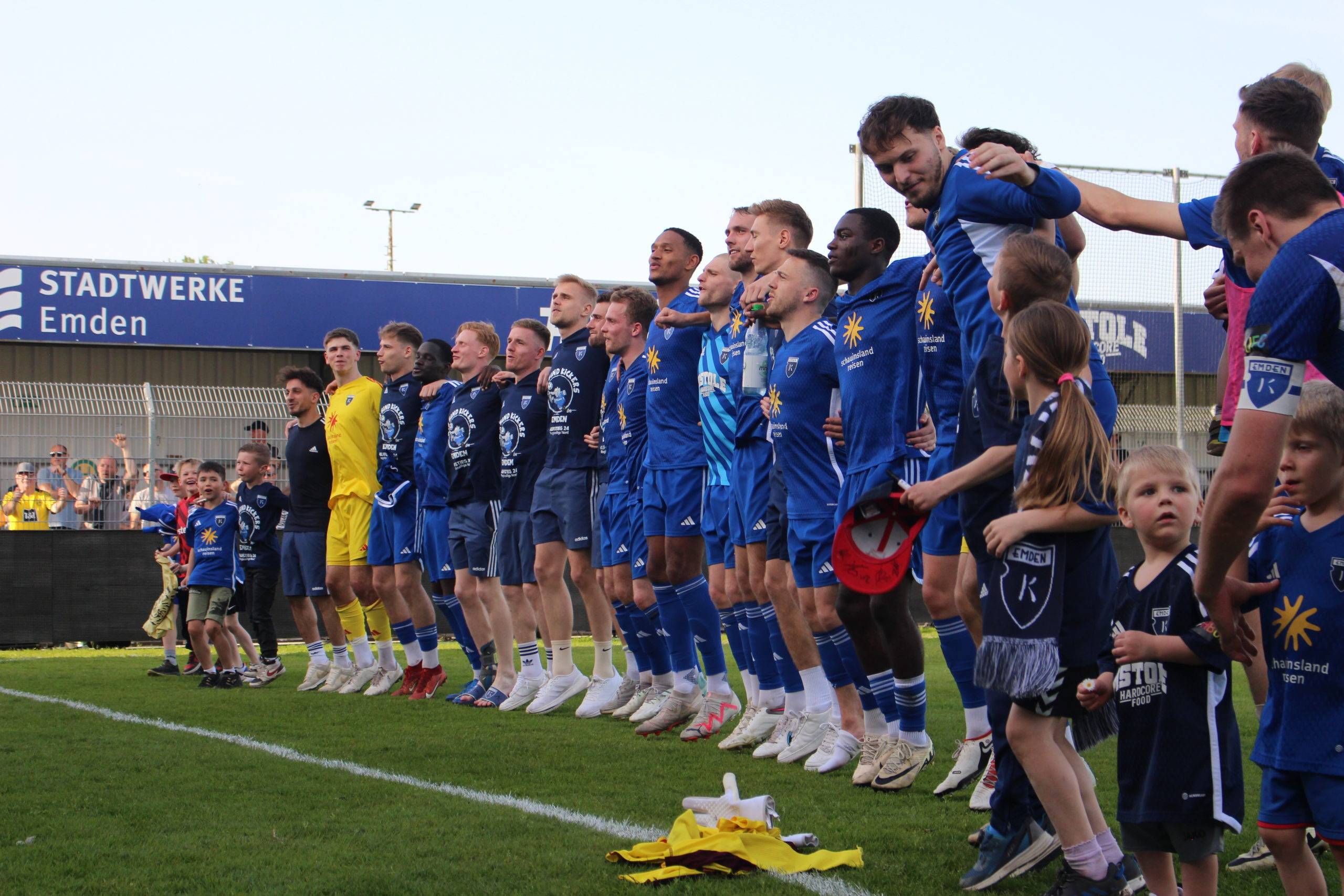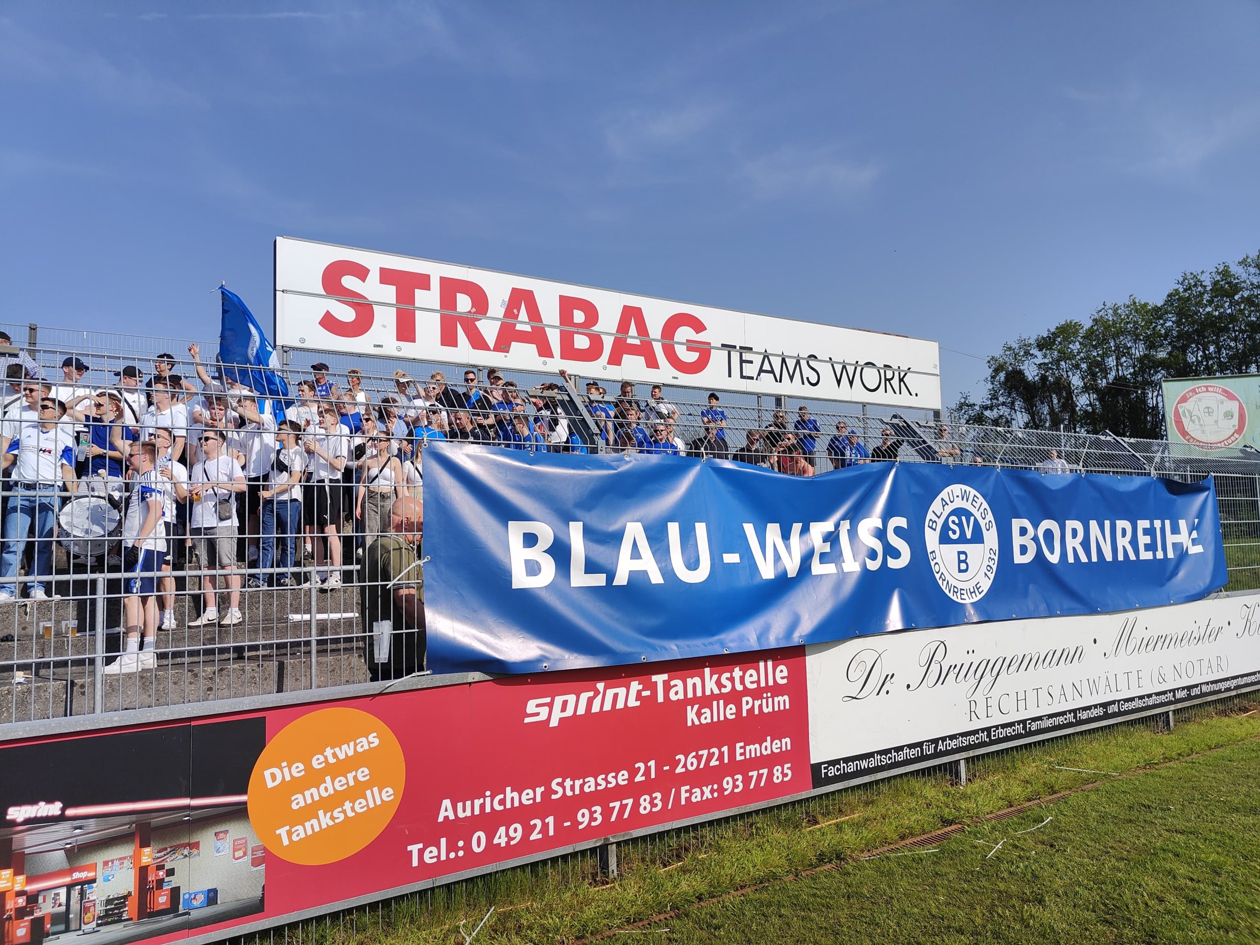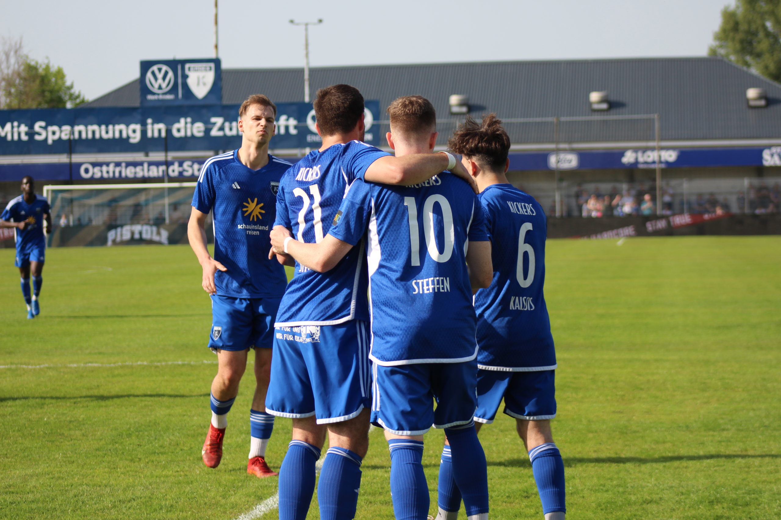 Aufgestiegen war der BSV Kickers Emden zwar bereits am vorangegangenen Spieltag mit dem 1:0 in Egestorf, die große Sause aber war für den 1. Mai im heimischen Ostfriesland-Stadion geplant. Der Gegner: Blau-Weiß Bornreihe. Und obwohl die Teufelsmoorer wohl absteigen werden, hielten sie in der ersten Halbzeit richtig gut mit. Erst im zweiten Durchgang, als bei Bornreihe die Kräfte nachließen, wurde es deutlich. Für Kickers trafen Tobias Steffen (20.), Fabian Herbst (40.) vor der Pause sowie DAvid Schiller (48.) und Tido Steffens (51., 62.) nach Wiederanpfiff. Für die Gäste verkürzte Terry Becker in der 42. Minute auf 1:2. Nach Abpfiff startete dann die Feier im Ostfrieslandstadion, mit Freibier und bei bestem Wetter.