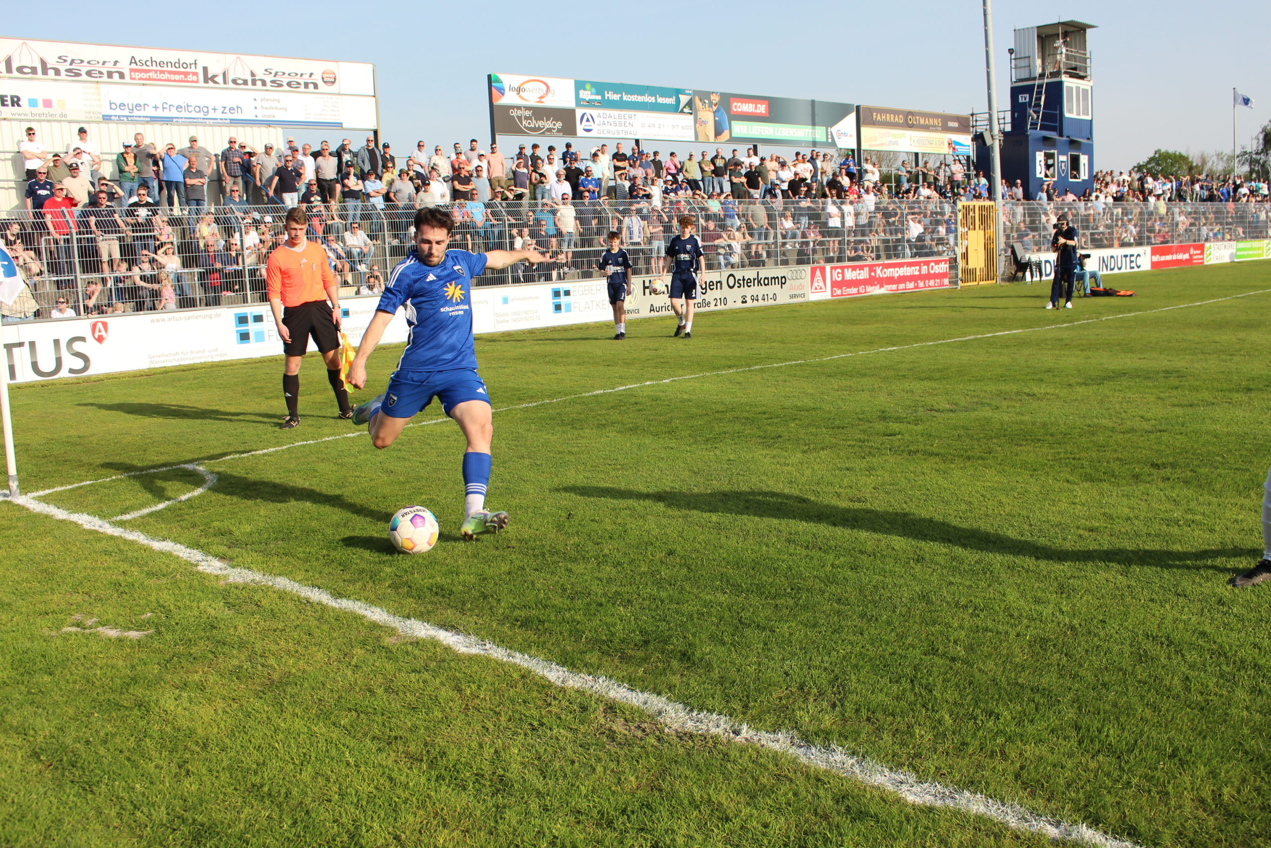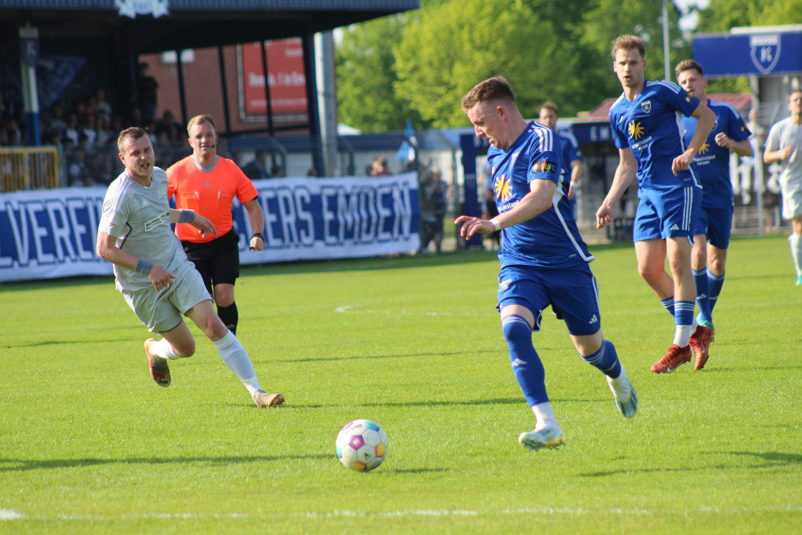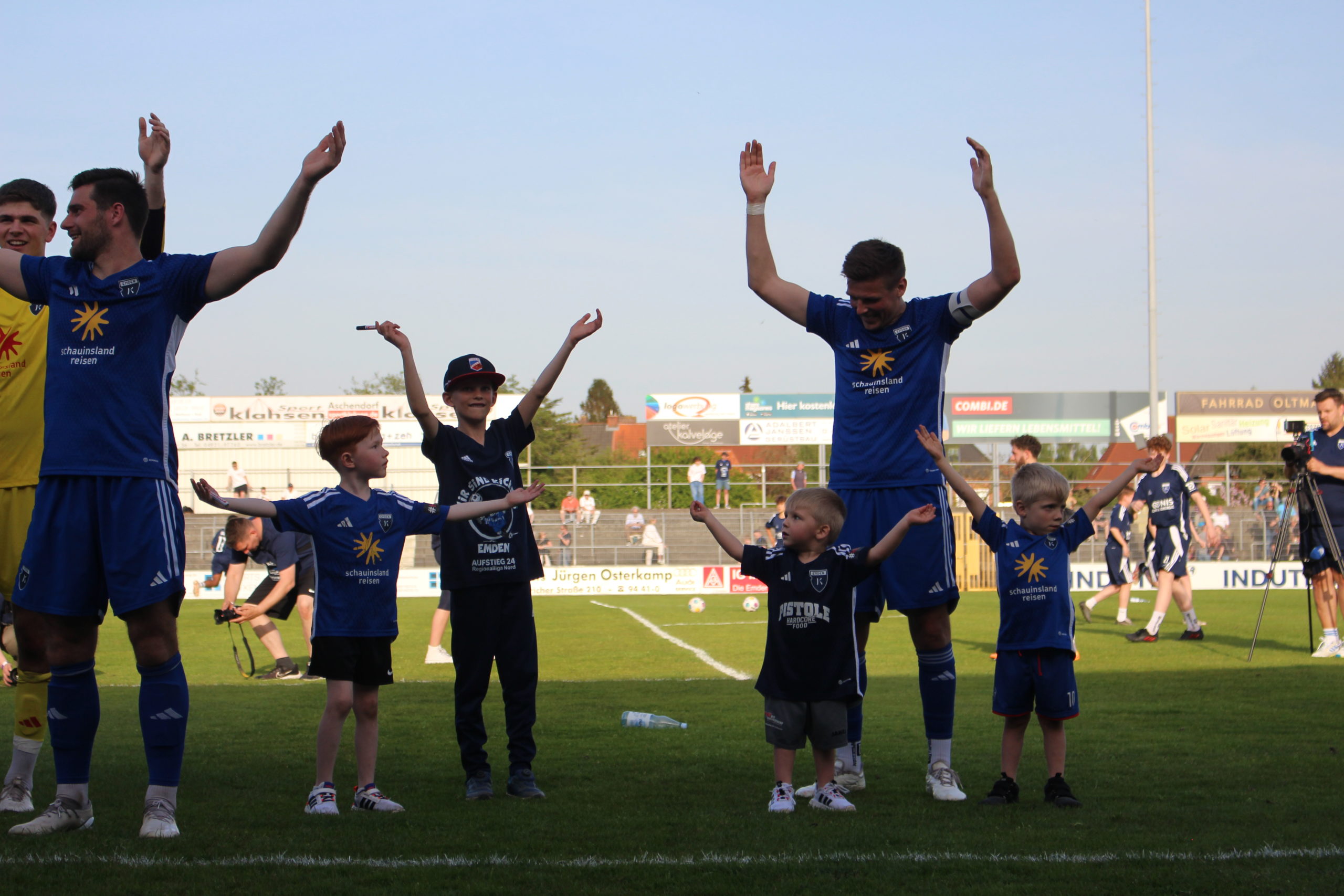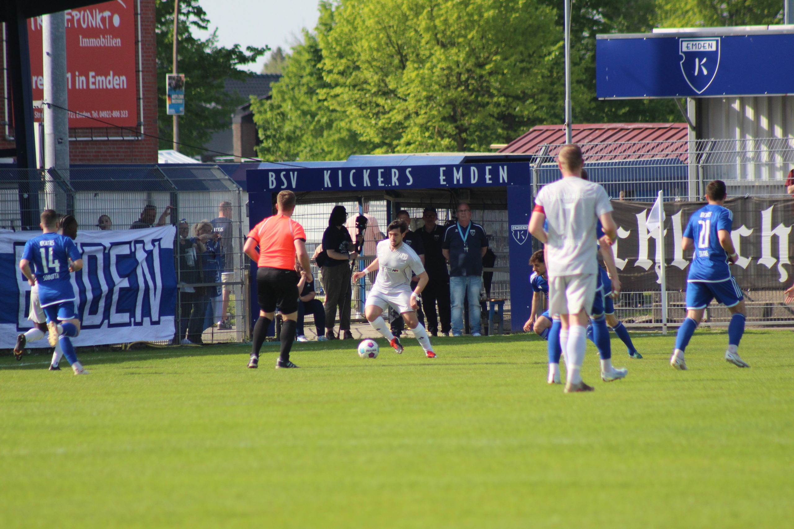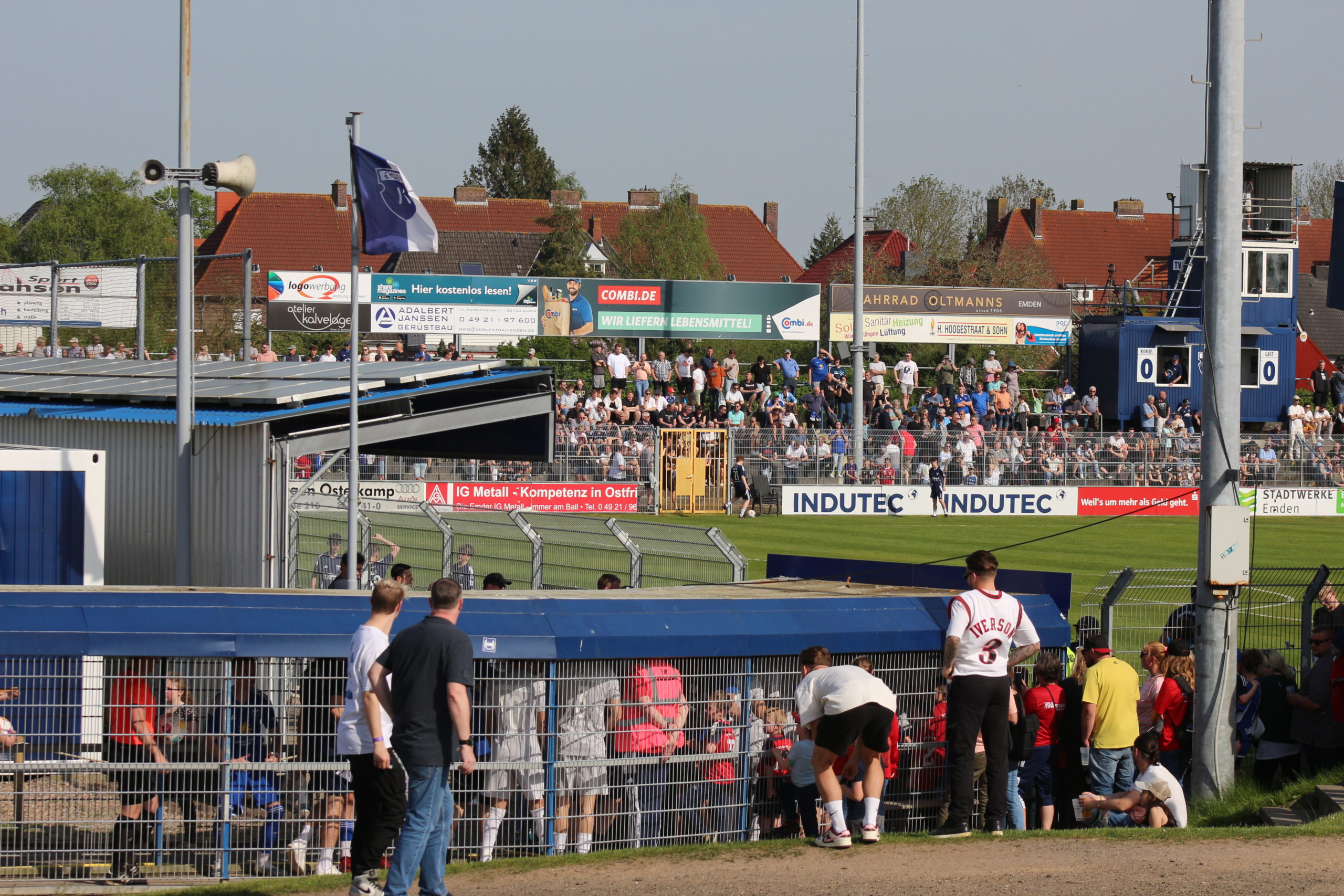 Aufgestiegen war der BSV Kickers Emden zwar bereits am vorangegangenen Spieltag mit dem 1:0 in Egestorf, die große Sause aber war für den 1. Mai im heimischen Ostfriesland-Stadion geplant. Der Gegner: Blau-Weiß Bornreihe. Und obwohl die Teufelsmoorer wohl absteigen werden, hielten sie in der ersten Halbzeit richtig gut mit. Erst im zweiten Durchgang, als bei Bornreihe die Kräfte nachließen, wurde es deutlich. Für Kickers trafen Tobias Steffen (20.), Fabian Herbst (40.) vor der Pause sowie DAvid Schiller (48.) und Tido Steffens (51., 62.) nach Wiederanpfiff. Für die Gäste verkürzte Terry Becker in der 42. Minute auf 1:2. Nach Abpfiff startete dann die Feier im Ostfrieslandstadion, mit Freibier und bei bestem Wetter.