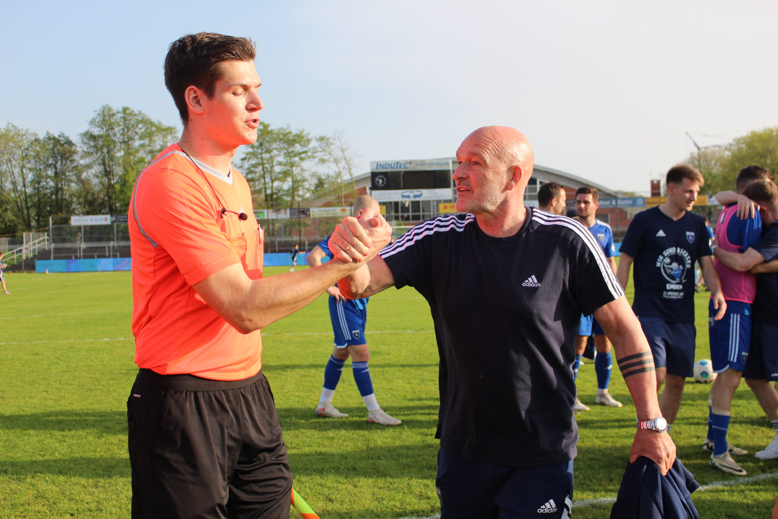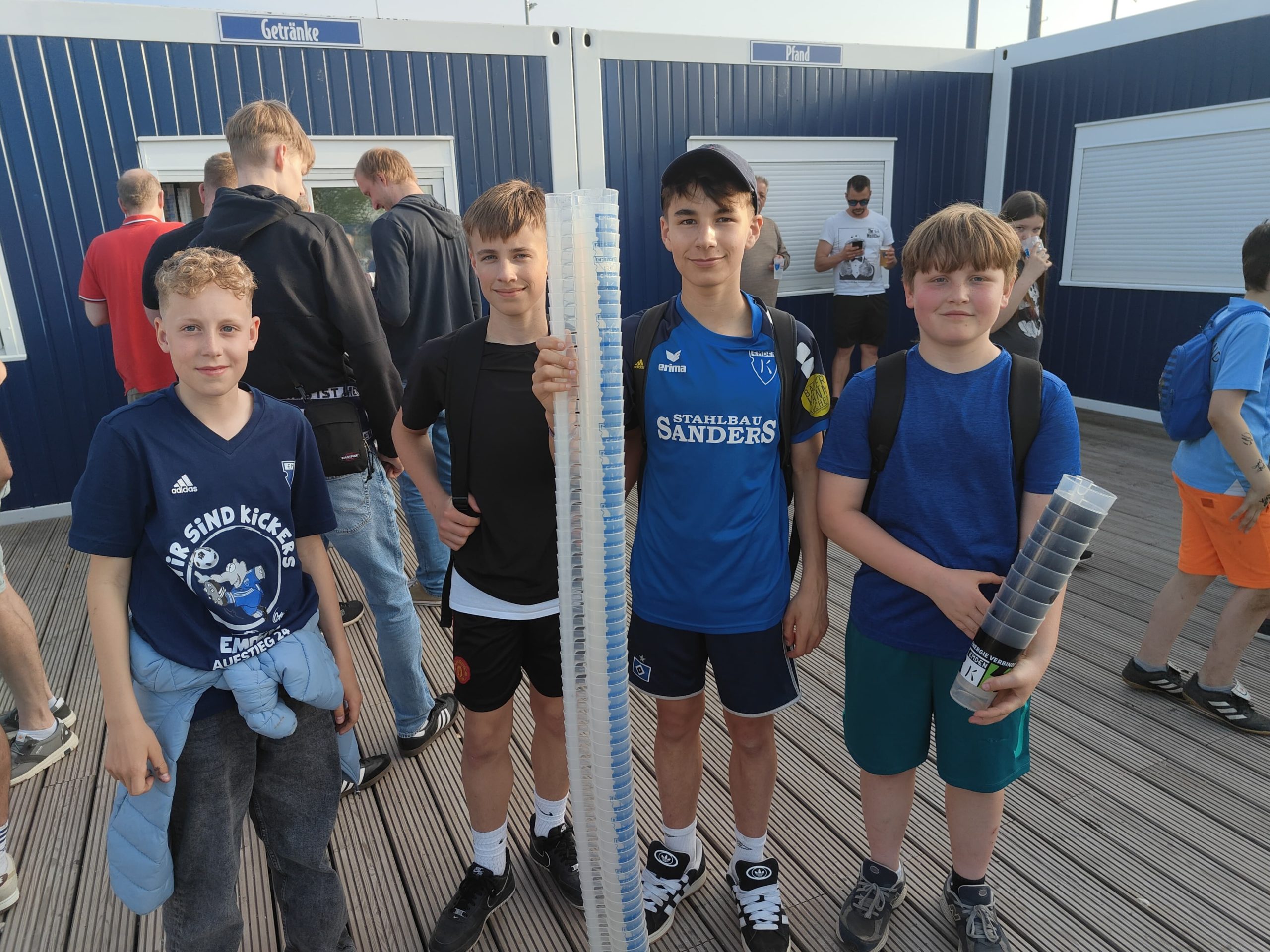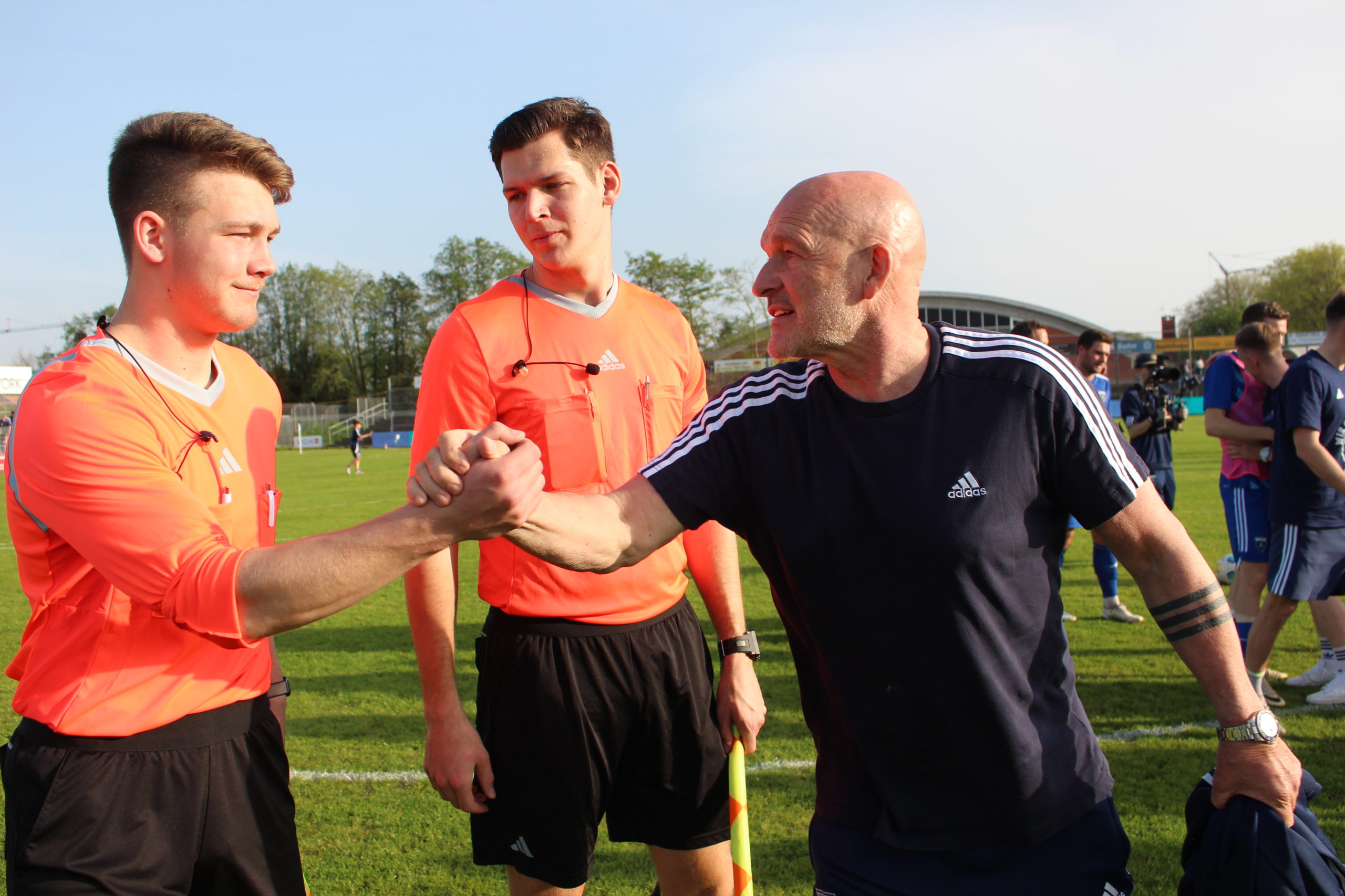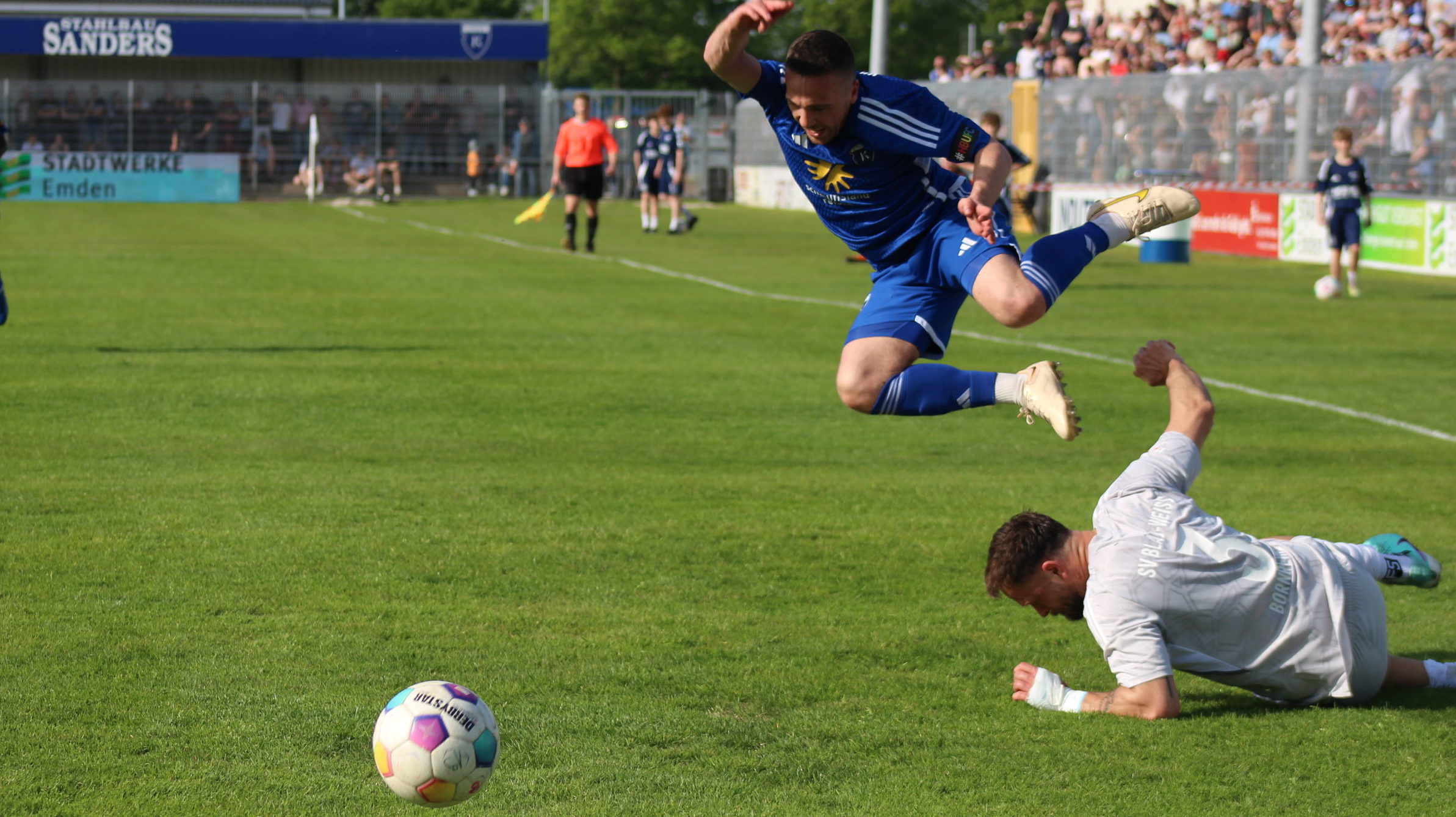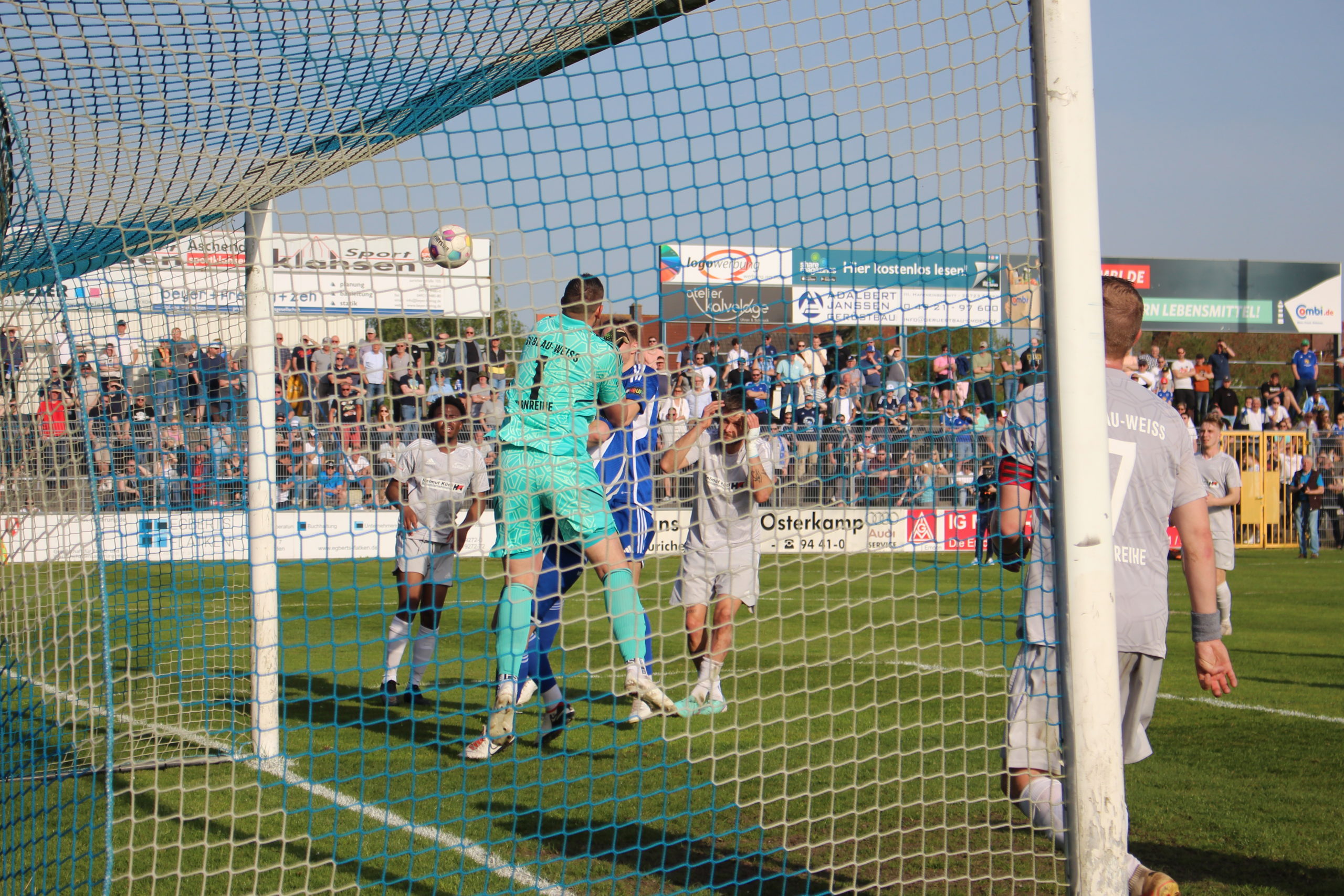 Aufgestiegen war der BSV Kickers Emden zwar bereits am vorangegangenen Spieltag mit dem 1:0 in Egestorf, die große Sause aber war für den 1. Mai im heimischen Ostfriesland-Stadion geplant. Der Gegner: Blau-Weiß Bornreihe. Und obwohl die Teufelsmoorer wohl absteigen werden, hielten sie in der ersten Halbzeit richtig gut mit. Erst im zweiten Durchgang, als bei Bornreihe die Kräfte nachließen, wurde es deutlich. Für Kickers trafen Tobias Steffen (20.), Fabian Herbst (40.) vor der Pause sowie DAvid Schiller (48.) und Tido Steffens (51., 62.) nach Wiederanpfiff. Für die Gäste verkürzte Terry Becker in der 42. Minute auf 1:2. Nach Abpfiff startete dann die Feier im Ostfrieslandstadion, mit Freibier und bei bestem Wetter.